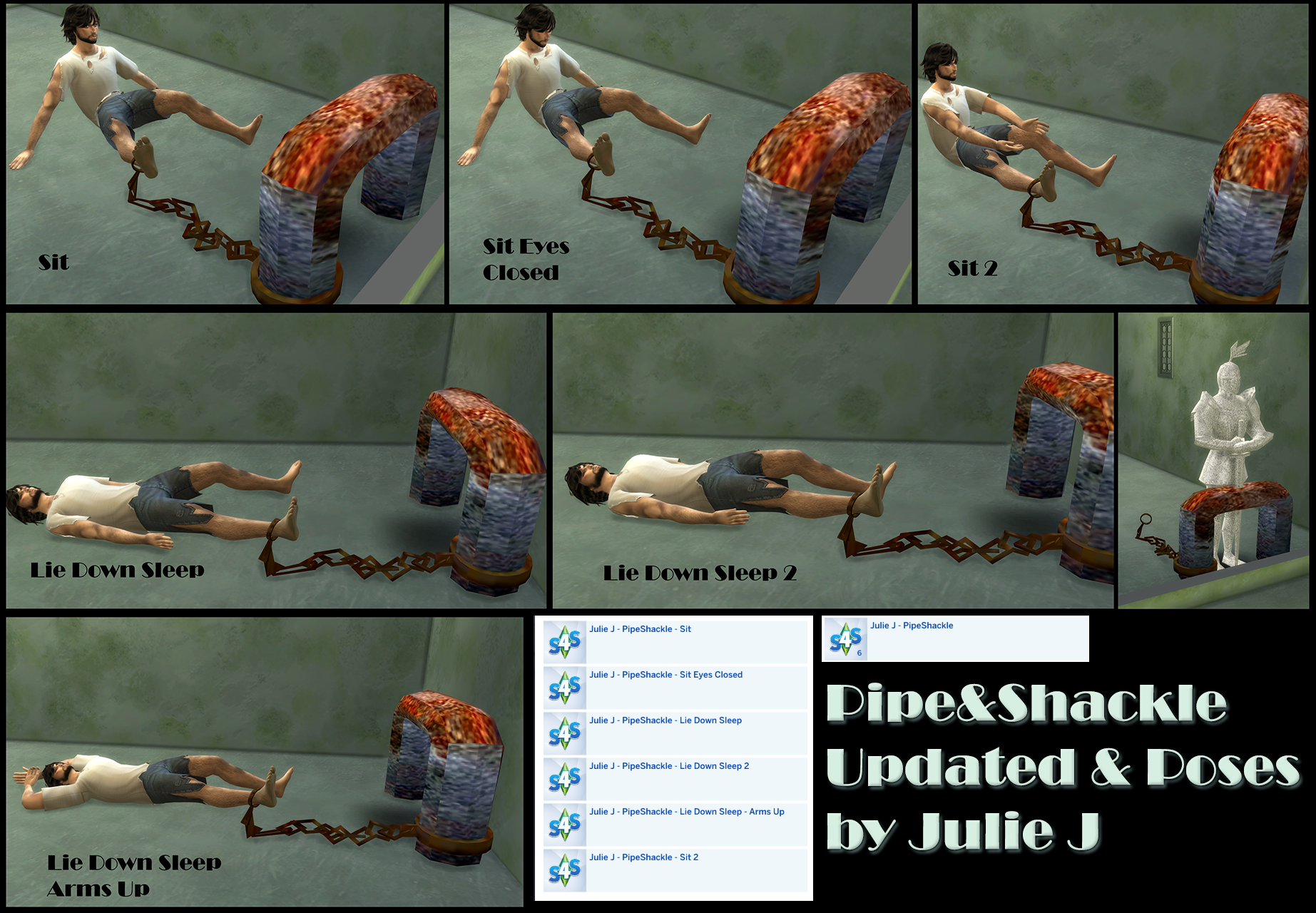 Pipe & Shackle originally by Mazzerwolf for the Sims 2. I converted it to Sims 4 and made some edits. I also made some poses
