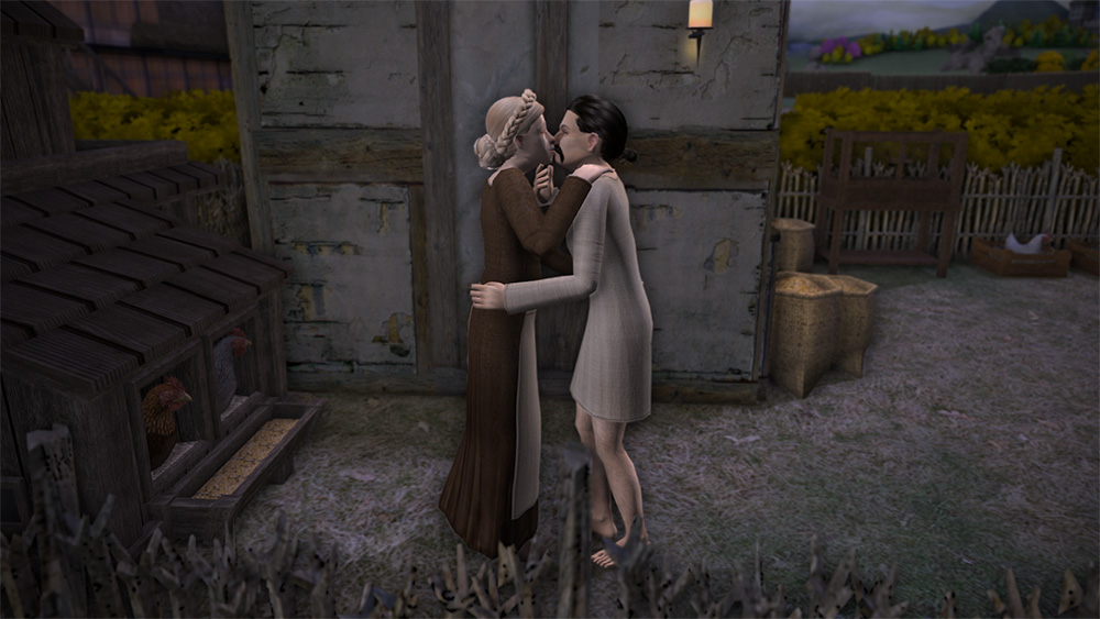 Now, the Pullets were doing not as terribly as I thought they would be, and looked to be on track to make rent, but there wan't much left for anything else. So, imagine my shock when I sent Eloise to cook dinner and was told that the fridge was empty! I hadn't come across this problem in previous families because I had never had a family that polished off each Group Meal in one sitting before! We don't have a Market in Dallùbach yet because we'll need to beome a Hamlet first. I had to have them slaughter one of their precious chickens to serve dinner that night :*(