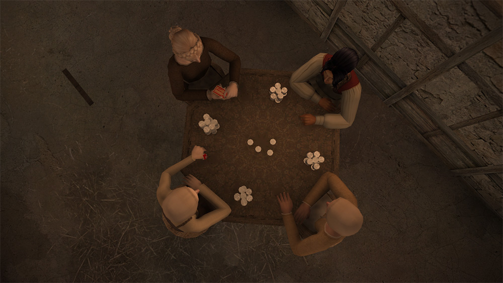 I genuinely didn't know what to do with these two for a good bit, and it was worrisome. As Yeomen, they can't have access to knowledge items and there's a limit to how much I could start them off with in terms of entertainment. Beatrice loves cooking and wanted to learn more, but I could only have her learn through practice. Emma was just moping about and beating the shit out of her doll, so she didn't want to have friendly chats and rejected any overtures of friendship. It was an awkward situation for a while.