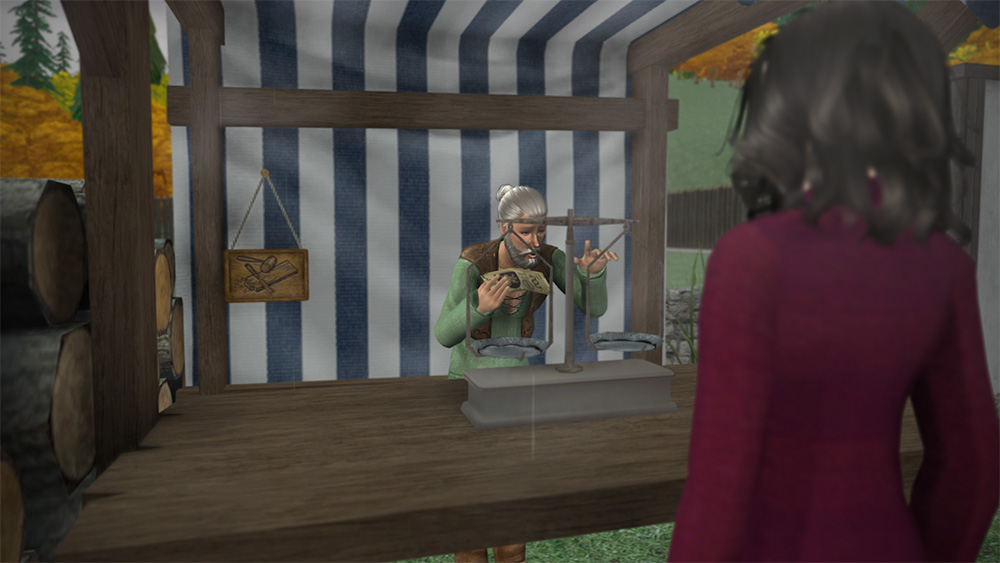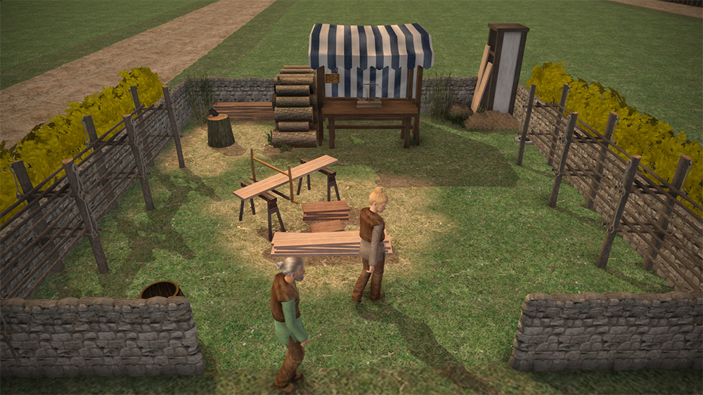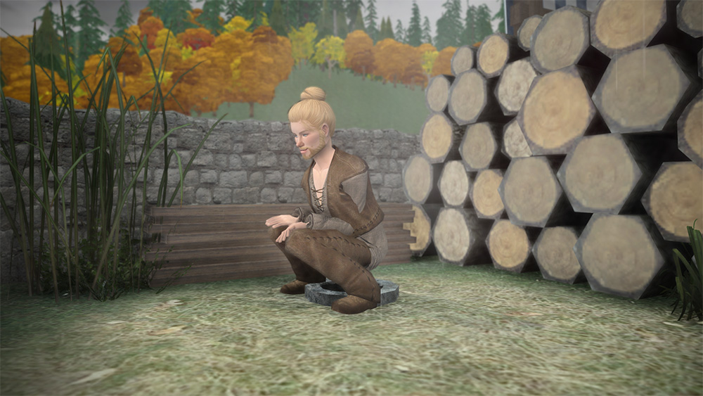 Welcome to the Woodyard! The tiny 1x1 lot in the village where Rulf and Rowan sell their gathered and processed wood.