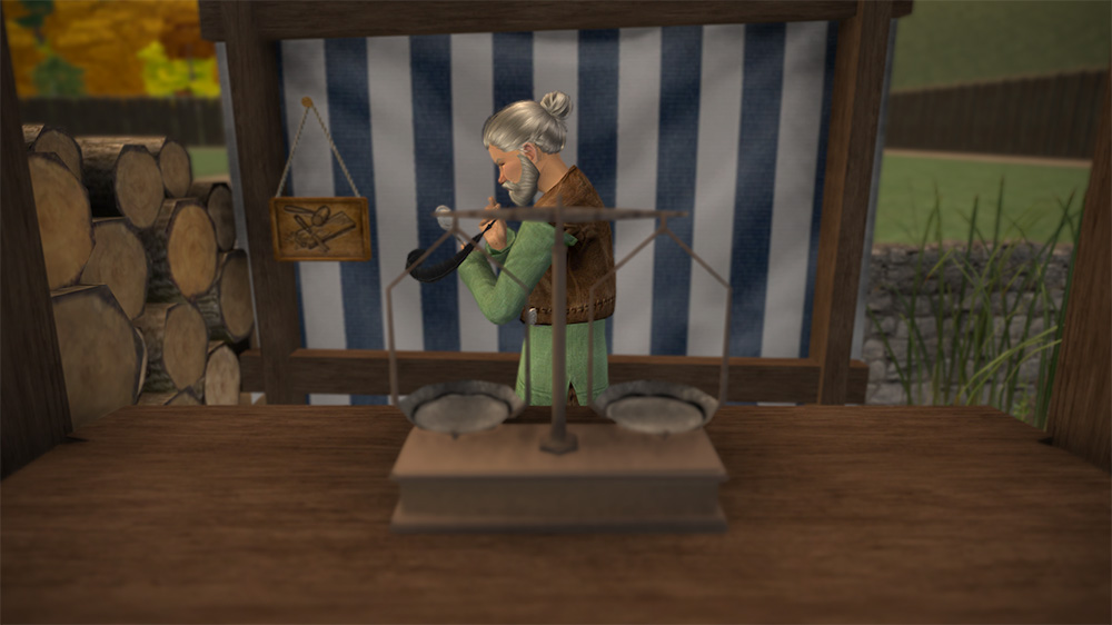 When we left off, Rowan and Rulf had set off before dawn to collect branches to sell. Now they've arrived at the Woodyard for their first day of business!