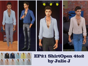 TS2: EP21 ShirtOpen 4to2 by Julie J Mesh included - Has fat & preg morphs Doesn't work with low-rise pants Male - YA/A Top Separate SFS / MEDIAFIRE